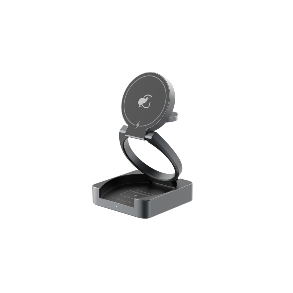 Qi2 Certified 3in1 Wireless Charger Stand 15W Foldable for iPhone Apple Watch Earbuds Black