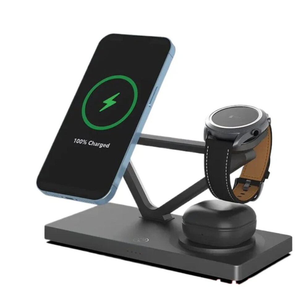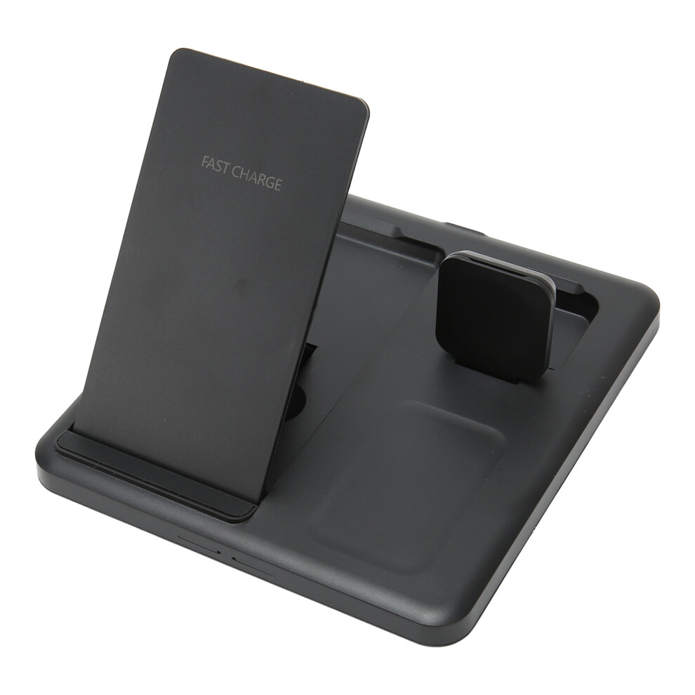 Multifunctional 4-in-1 Wireless Charger Station for Phones, Apple Watch & Earbuds - Fast Charging, Black, ABS Plastic