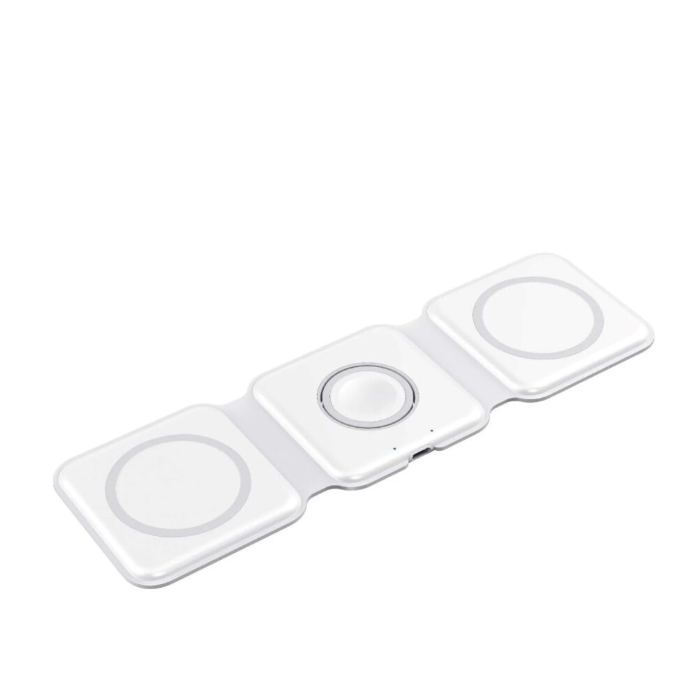Best 3 in 1 Wireless Charging Station W07 Foldable 15W Qi Charger for Smartphone, Apple Watch, and Earbuds - White