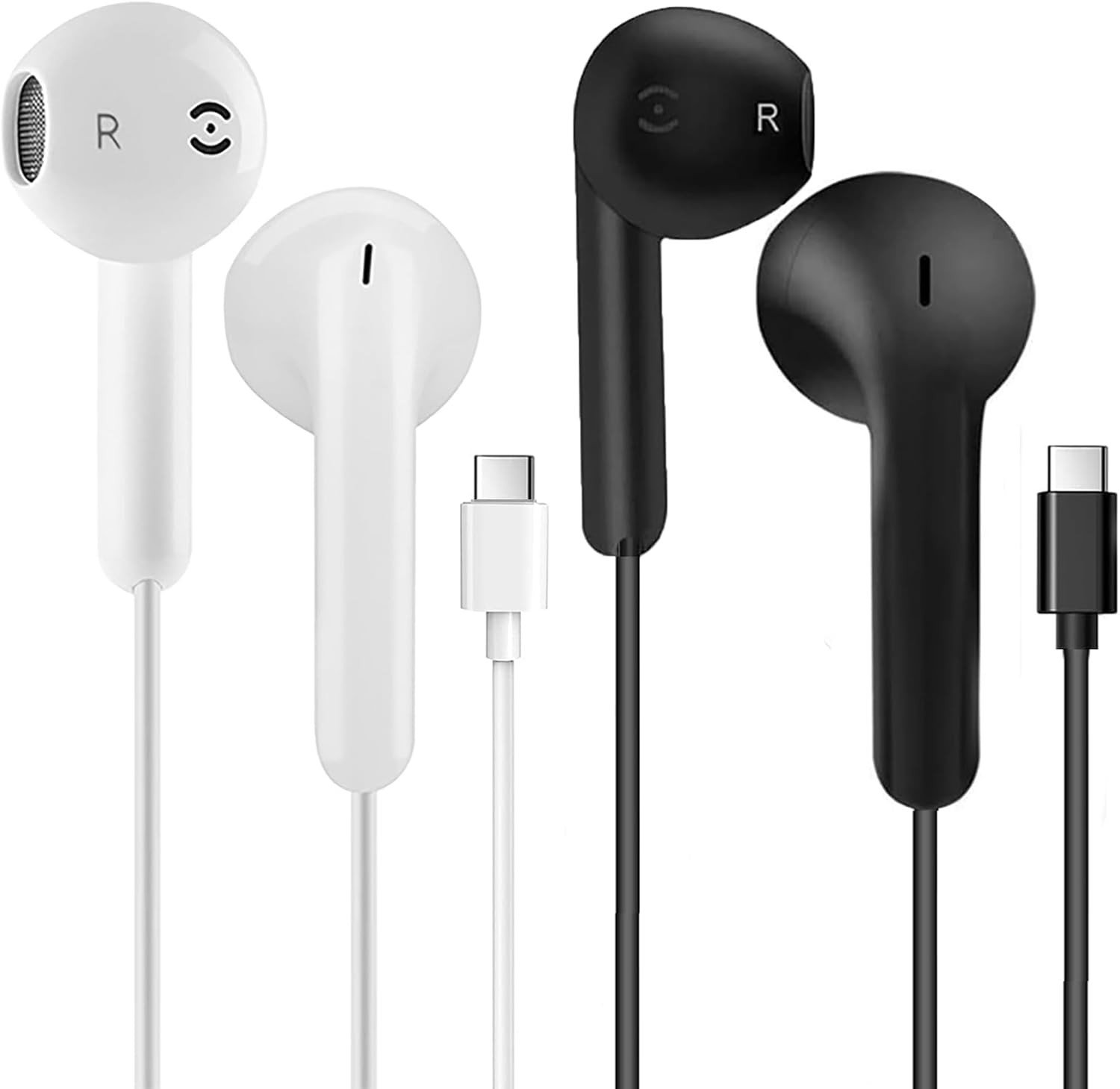 2 Pack USB C Headphones for Apple iPhone 17 16 15, Type C Earphones with Microphone&Noise Cancelling Wired Earbuds for iPhone 17 16 15 Pro Max, iPad Pro,Galaxy S25 S24 Ultra,Pixel 9 (White&Black)