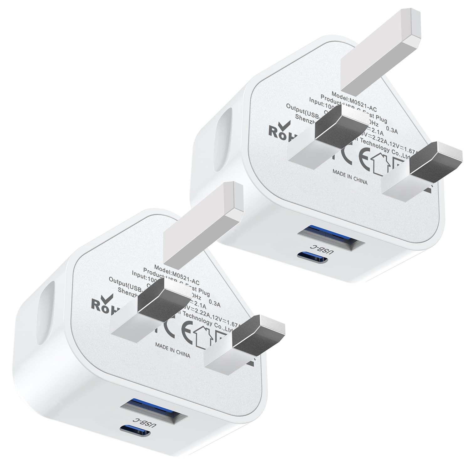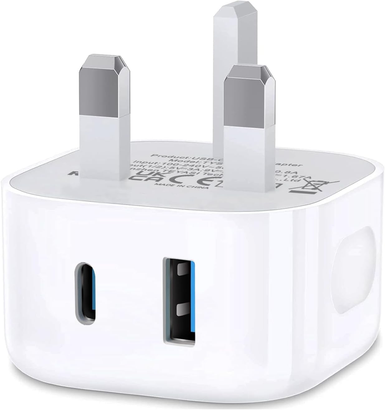 USB C Plug Fast Charge,25W USBC Charger Plugs Adaptor UK for New Apple iPhone 17 Pro Max Air 16e 16 Series/15 Series/14 Series/13 Series/12/11 SE/iPad Series/Watch,Type C and A USB Port Charging Plug