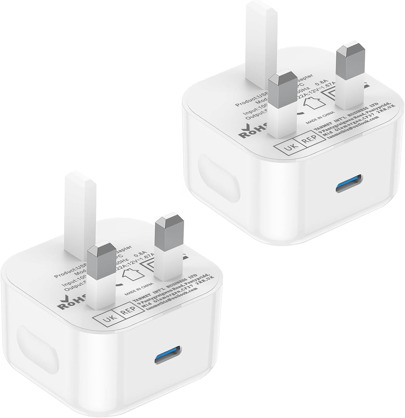 USB C Plug,2Pack 25W USBC Charger Plug Adaptor UK Fast Charge for Apple iPhone 16e 16 Plus 16 Pro Max 15 14 13 12 11 SE/New iPad Pro Air Mini 8 9 10 11th A16 2025,Type C Port Wall Plug USB-C Charging