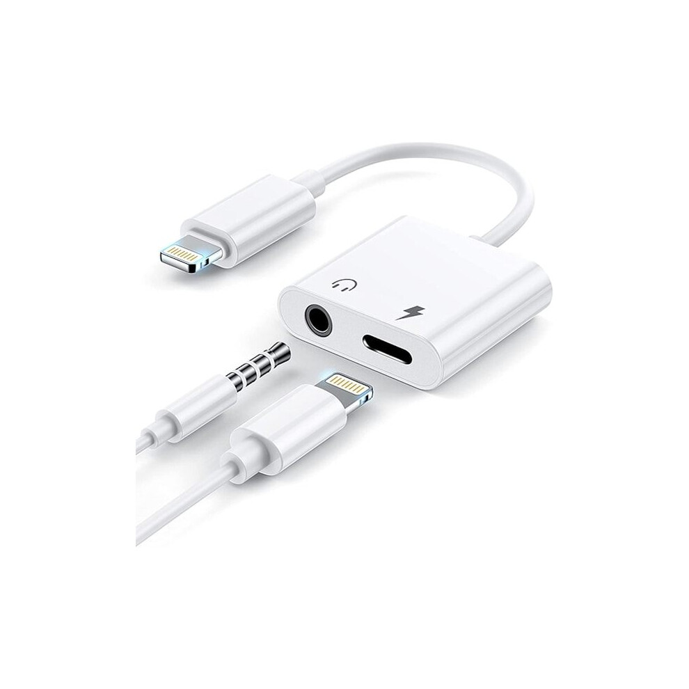 2 in 1 Headphone Adapter compatible with iPhone 11, Apple Lightning to 3.5mm Jack Aux Audio Dongle for Headphones & Car
