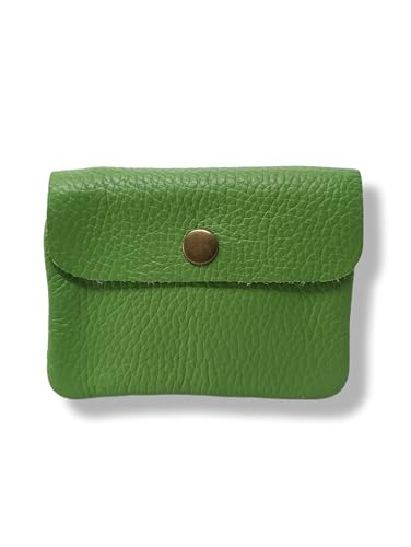 Générique Women's Iridescent Metallic Apple Green Grained Leather Wallet, 3 Compartments, RFID Case, Minimalist, 12 cm