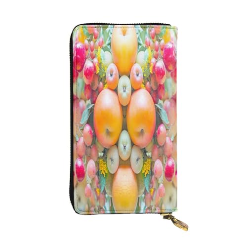 OIBNKCN Symmetrical colored apple pattern Premium Leather Wallet with Metal Zipper, Multiple Card Slots Cash Pockets, ideal Gift for Her or Him