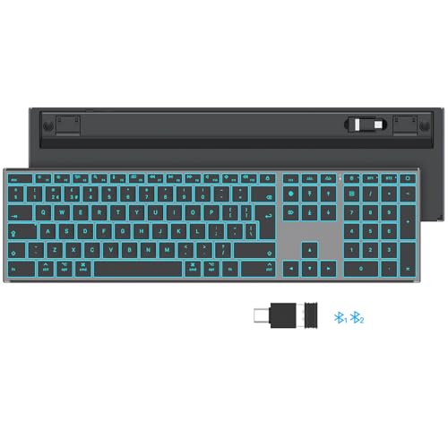 OMOTON Wireless Keyboard for Mac with Metal Frame, 2.4G/Bluetooth Keyboard Backlit, Ultra Slim, Rechargeable Keyboard Quiet for Apple MacBook Neo/Pro/Air, iMac, Mac Mini, QWERTY UK Layout, Space Gray