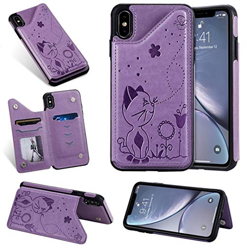 SATURCASE Case for Apple iPhone XS Max, Cat Bee Embossing PU Leather Flip TPU Magnetic Buckle Wallet Stand Card Slots Protective Cover for Apple iPhone XS Max (Purple)