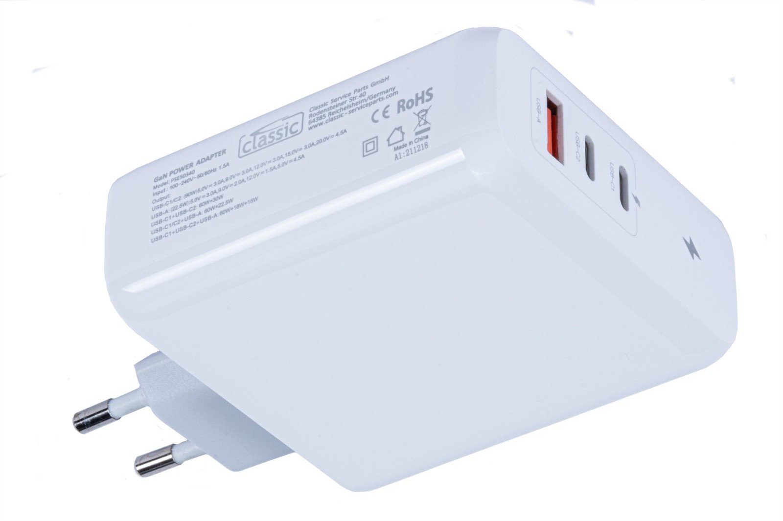 GaN Power Adapter for Apple MACBOOK PRO 14 (2021) with EU 2 pin plug