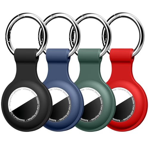 Linsaner [4 Pack] Compatible with AirTag Holder Keychain Silicone Key Ring Cases Tags Chain for Apple for Air Tag GPS Item Finders Accessories, Black/Blue/Green/Red