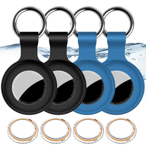 4 Pack for Airtag Holder IPX8 Waterproof for Apple Air Tags with Keychain Travel Essentials, GPS Cover Anti-Scratch for Air-Tag Item Finders Case for Pets,Kids,Luggages (Black+Black+Blue+Blue)