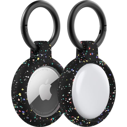 COLORCORAL AirTag Holder Case- Silicone Case for AirTag Keyring for Keys, Bags, Luggage, Pet Collars Anti- Lost and Scratch-Resistant Design for Apple Air Tags 2021(Black)