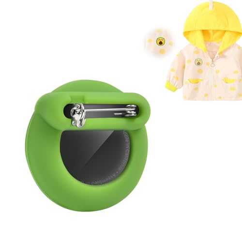 AXFEE Hidden Air Tag Case for Kids, Air tag Holder with Safety Pins, Anti-Removal Air-tag Sicoilne case, Compatible with Apple Air-tags for Kids Adult Pets Backpack Inside Clothes, Avocado