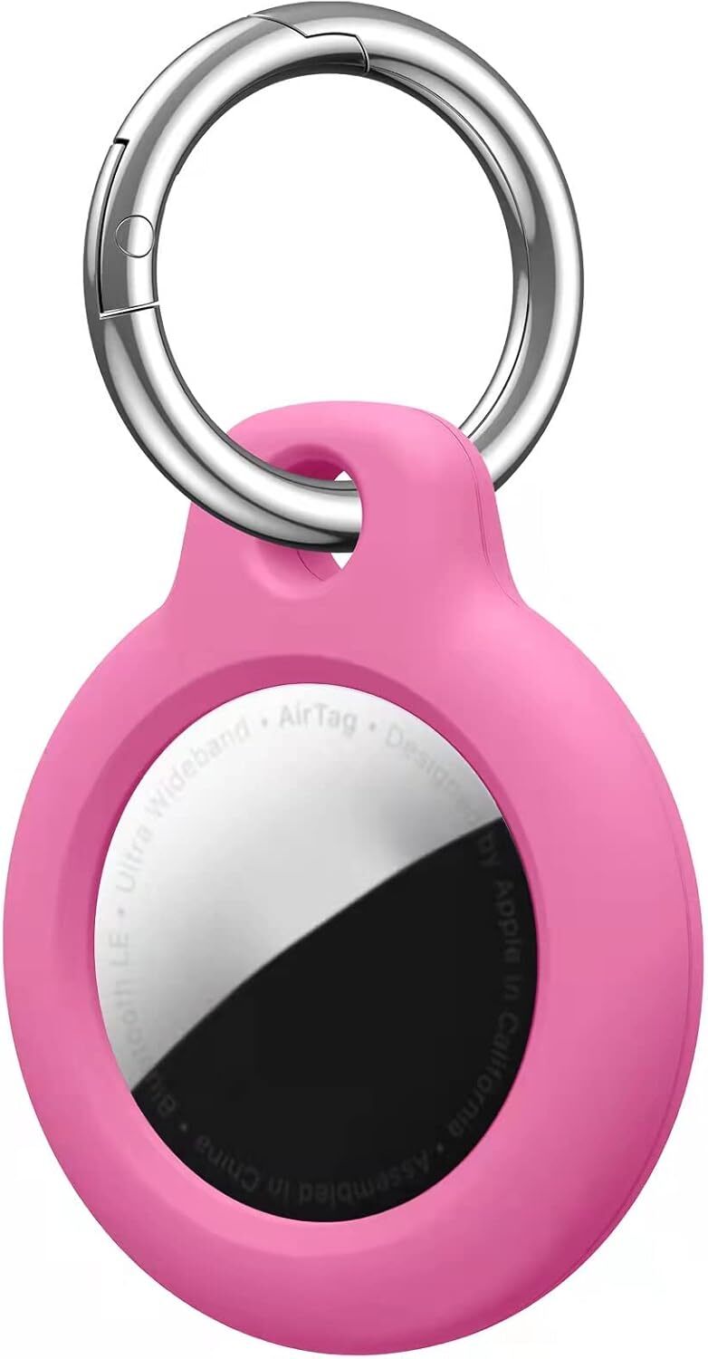 Linsaner 1 Pack Available for AirTag Holder Compatible with Air Tag Case Keychain Silicone for AirTags Key Ring Tags Chain for Apple for GPS Item Finders Accessories, (Hot Pink)