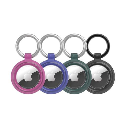 [4-Pack] AirTag Holder - Silicone Air Tags Case with AirTag Keyring - Scratch-Resistant & Anti-Lost Case for Keys, Bags, & Pet Collars - Fits Apple AirTag