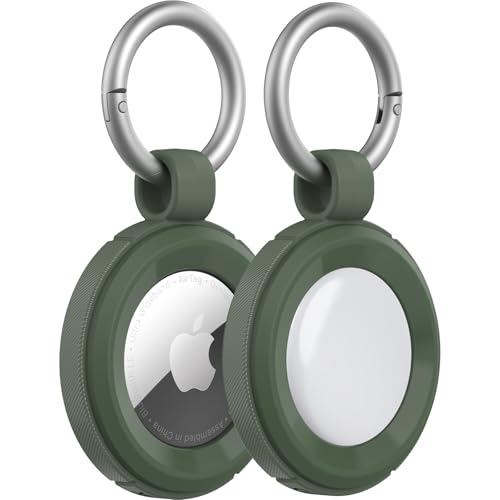 Linsaner Compatible with AirTag Case Keychain for Air Tag Holder Silicone for AirTags Key Ring Cases Tags Chain for Apple for AirTag GPS Item Finders Accessories,Dark Green