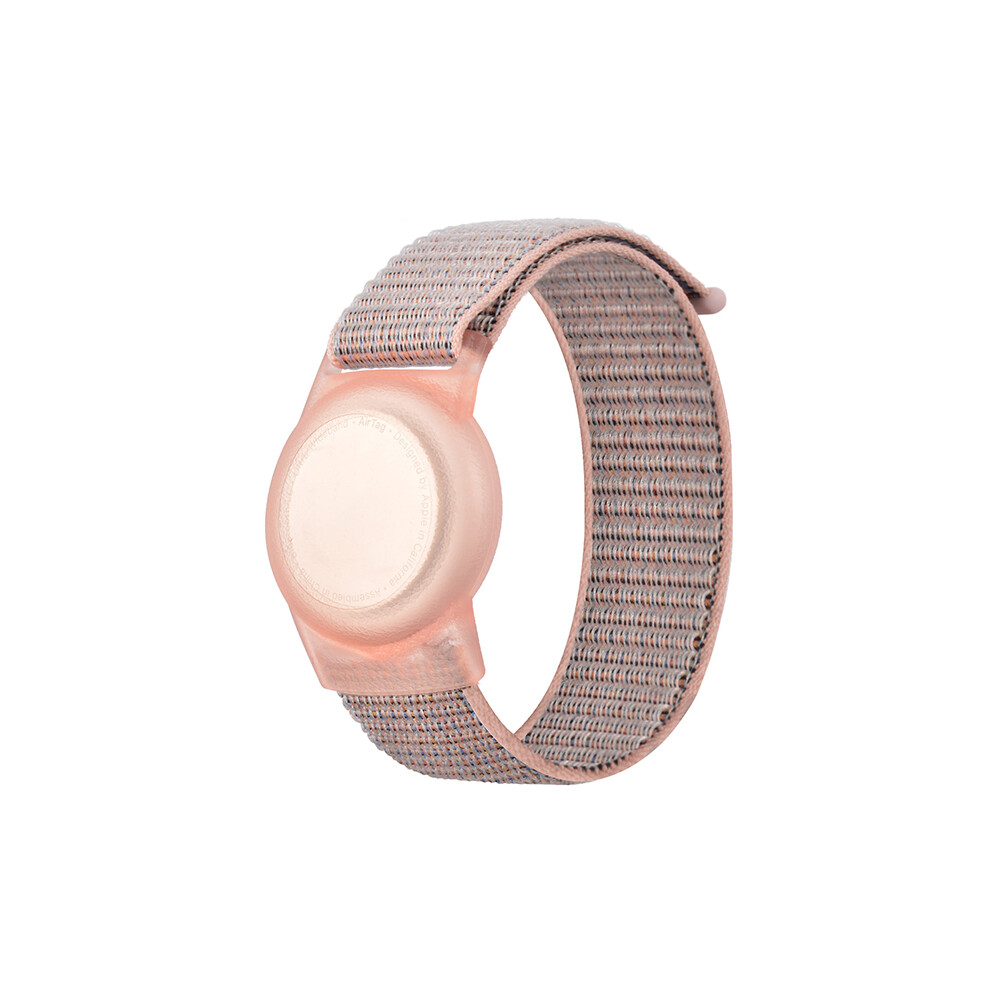 (Bright Yellow/S) For Apple AirTag Tracker Anti-Lost TPU Protective Case Watch Band Design Loop Nylon Bracelet Strap - Dusty Pink L