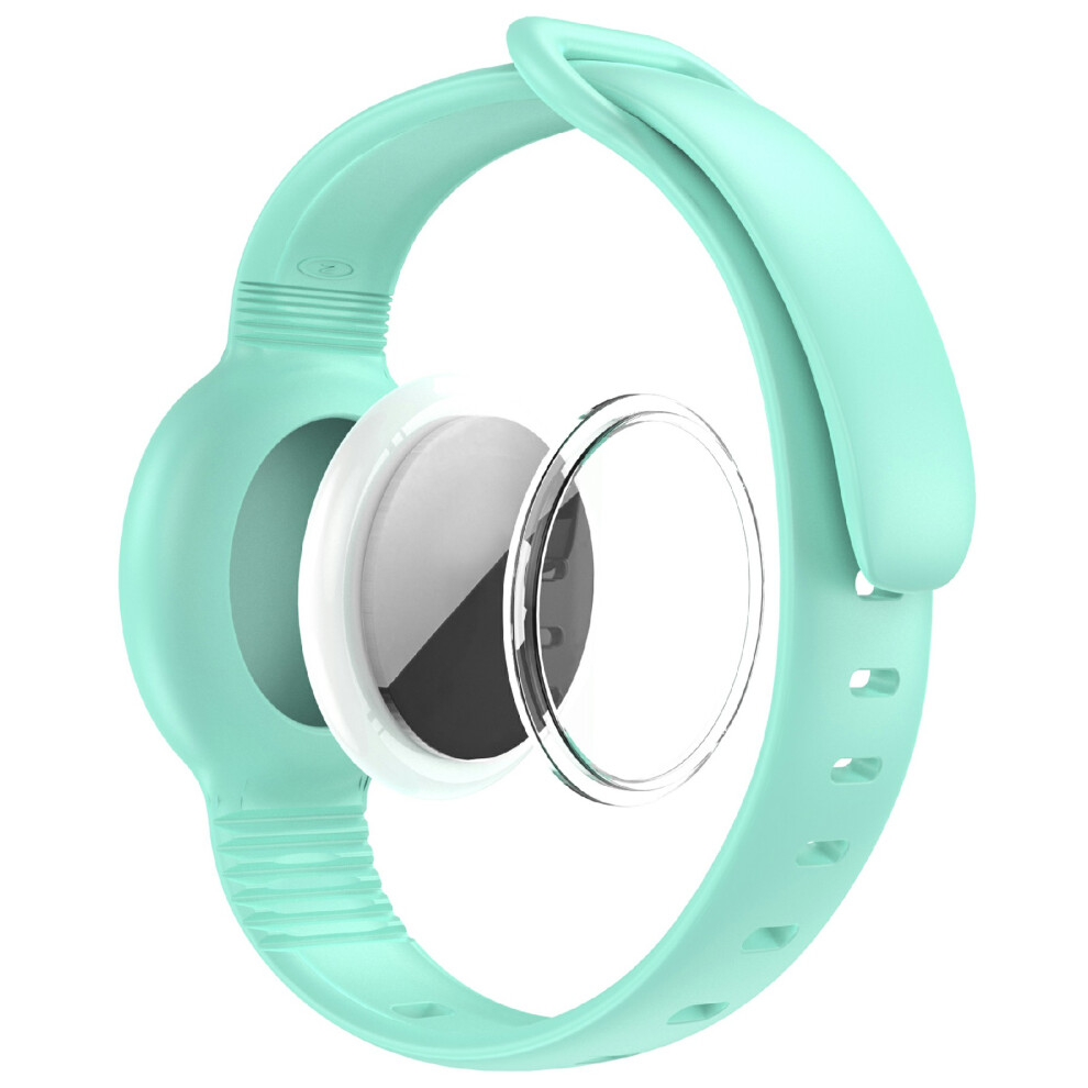 (Mint Green) CS27 Watch Strap for Apple AirTag Tracker Protective Case Silicone Wristband for Children Adult