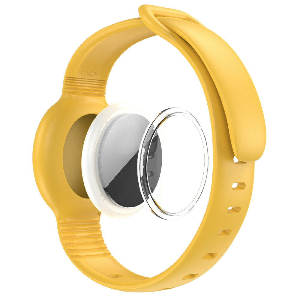 (Yellow) CS27 Watch Strap for Apple AirTag Tracker Protective Case Silicone Wristband for Children Adult
