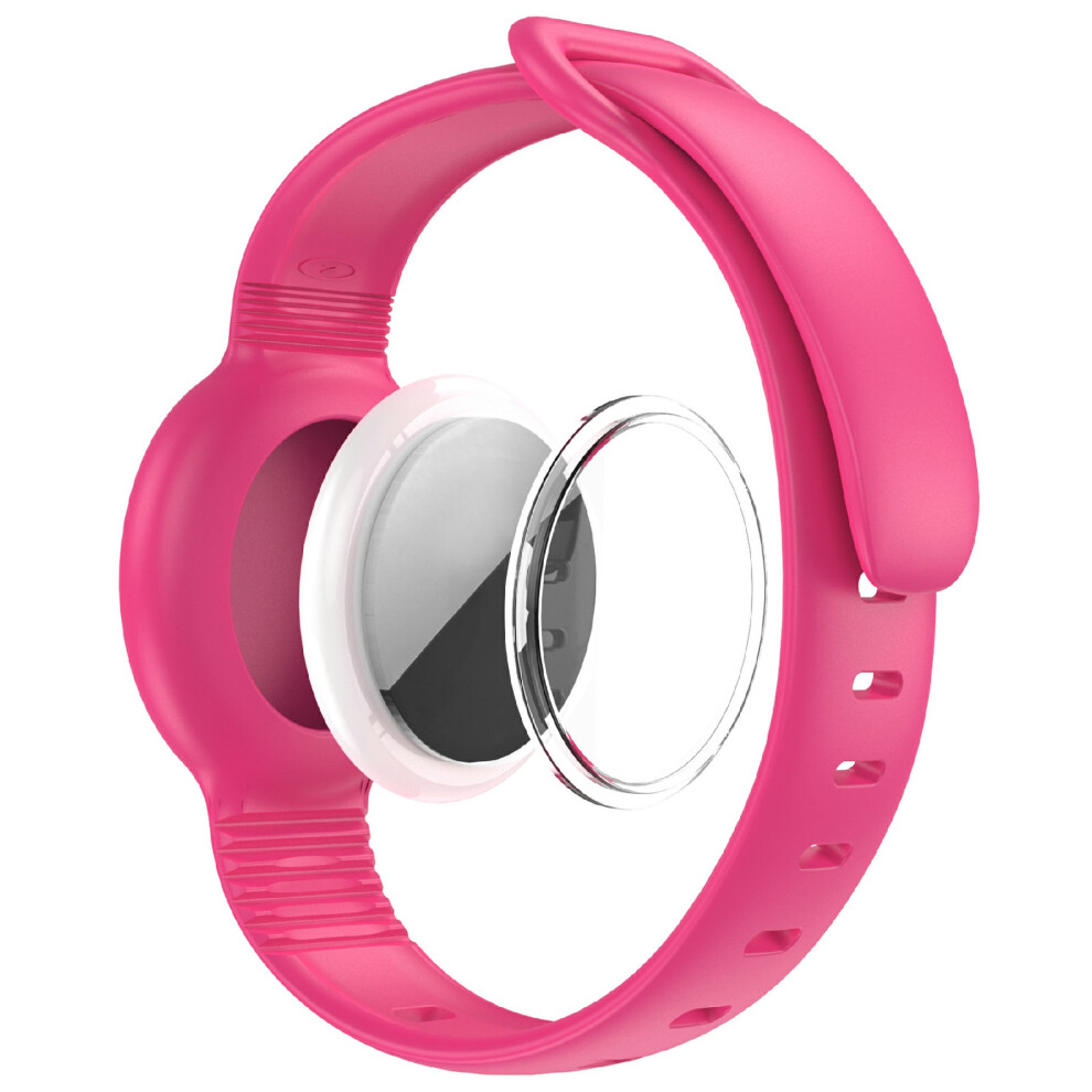 (Pink) CS27 Watch Strap for Apple AirTag Tracker Protective Case Silicone Wristband for Children Adult