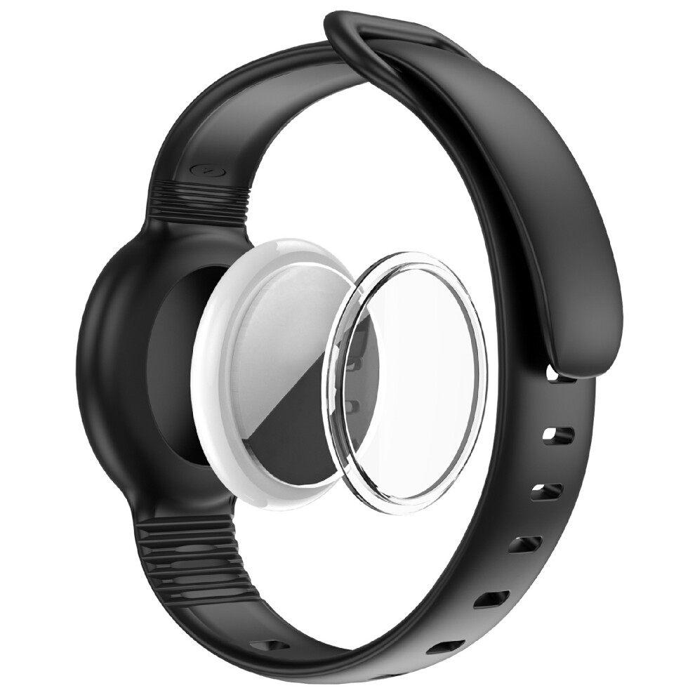 (Black) CS27 Watch Strap for Apple AirTag Tracker Protective Case Silicone Wristband for Children Adult