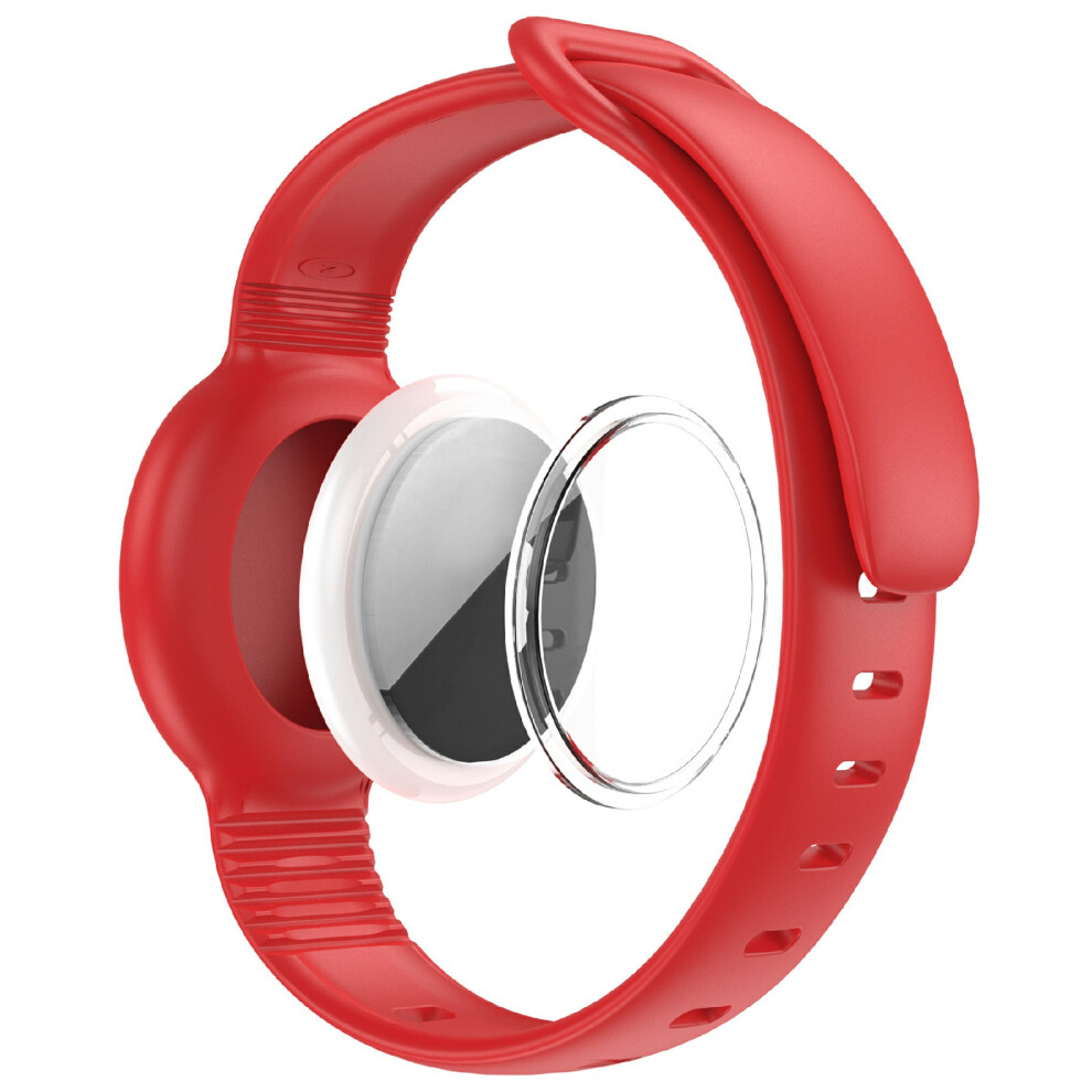 (Red) CS27 Watch Strap for Apple AirTag Tracker Protective Case Silicone Wristband for Children Adult