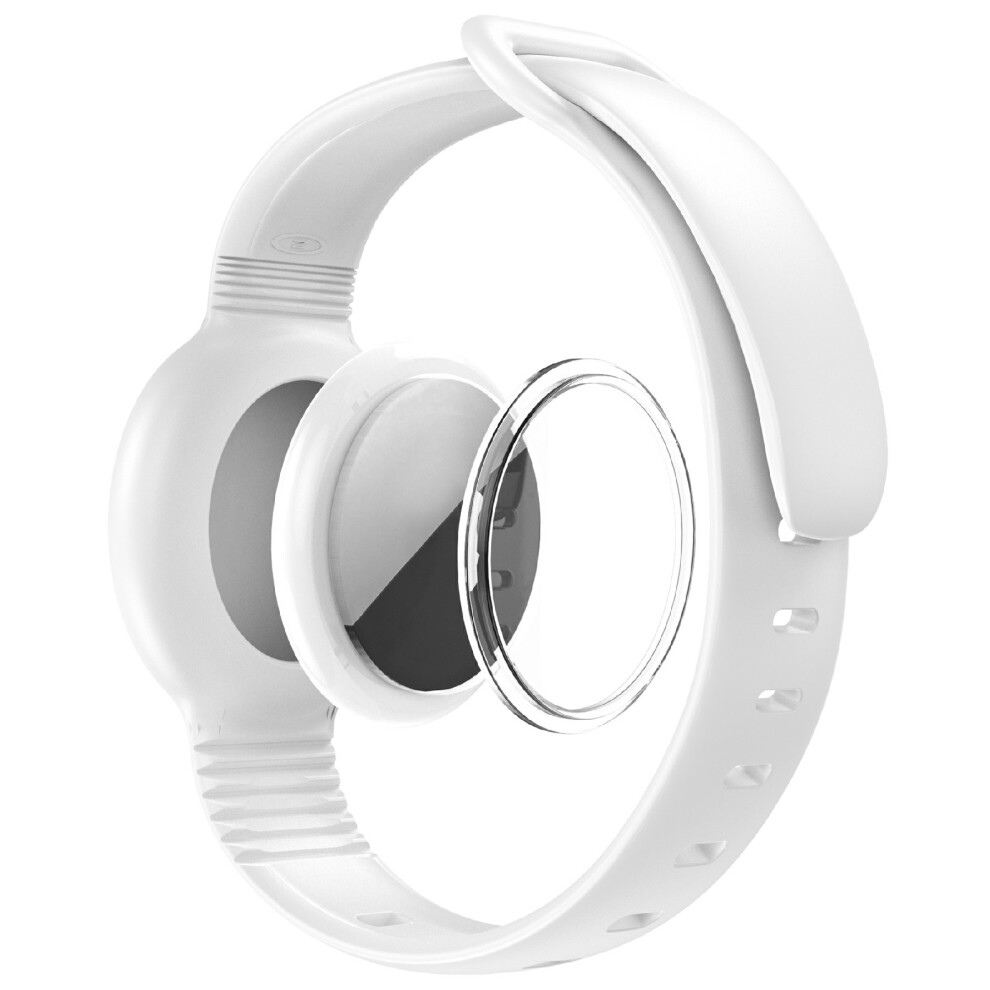 (White) CS27 Watch Strap for Apple AirTag Tracker Protective Case Silicone Wristband for Children Adult