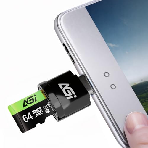 AGI TF138 3-in-1 64GB MicroSD Card with USB-C Reader & SD Adapter, V30 U3 A2 Memory Card, Plug & Play Backup for Phone, Camera & Laptop