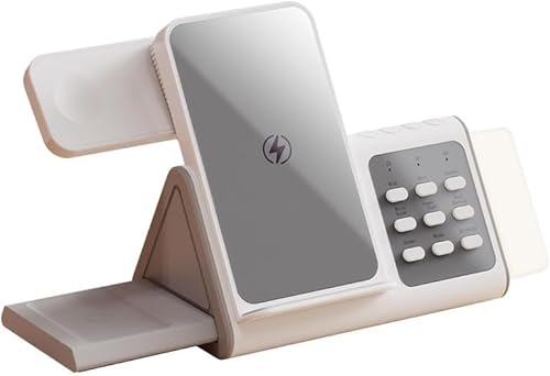 5-in-1 Wireless Charger Stand with White Noise & Night Light, 15W Fast Wireless Charger Station Compatible for iPhone 15 14 13 12 11 Pro Max Apple Series, Apple Watch, Airpods (White)