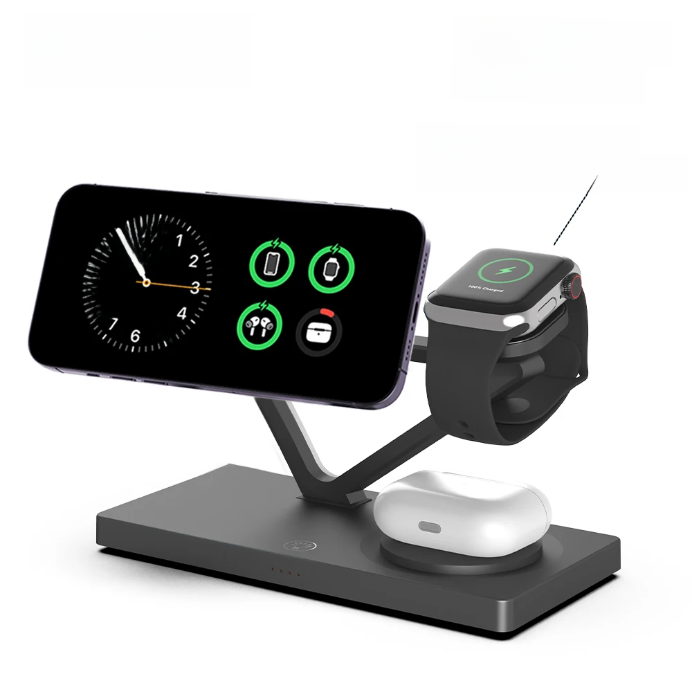 (black) 3 In 1 Magnetic Wireless Charger Pad Stand Foldable Phone Chargers for iPhone 15 14 13 12 11 Apple Watch AirPods 15W Fast Charging Dock Statio