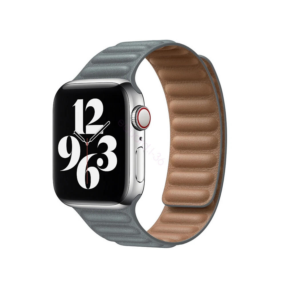 (Gray, 38/40/41mm) For Apple Watch Leather Link Band Magnetic Strap iWatch Series 7 6 5 4 3 40/44mm