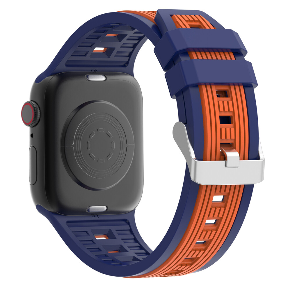 (Navy Blue+Orange) Dual Color Striped Silicone Strap for Apple Watch Series 11 10 42mm / 9 8 7 41mm / SE3 SE2 SE 6 5 4 40mm / 3 2 1 38mm Watch