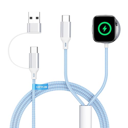 Camping Essentials Charger Cable Compatible with Apple Watch Series 11 10 SE 3 Ultra 3 - imodomio 1.2M Portable Nylon-Braided USB-C Cable for iPhone 17 16 15 Pro Max Phones (Blue)