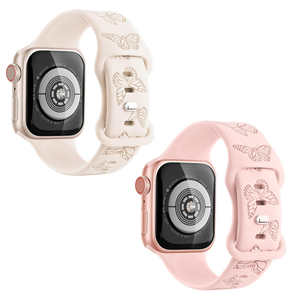 Watch Bands for Apple Watch Women Pink Silicone Strap 41mm 40mm 38mm Butterfly Design Adjustable Metal Clasp