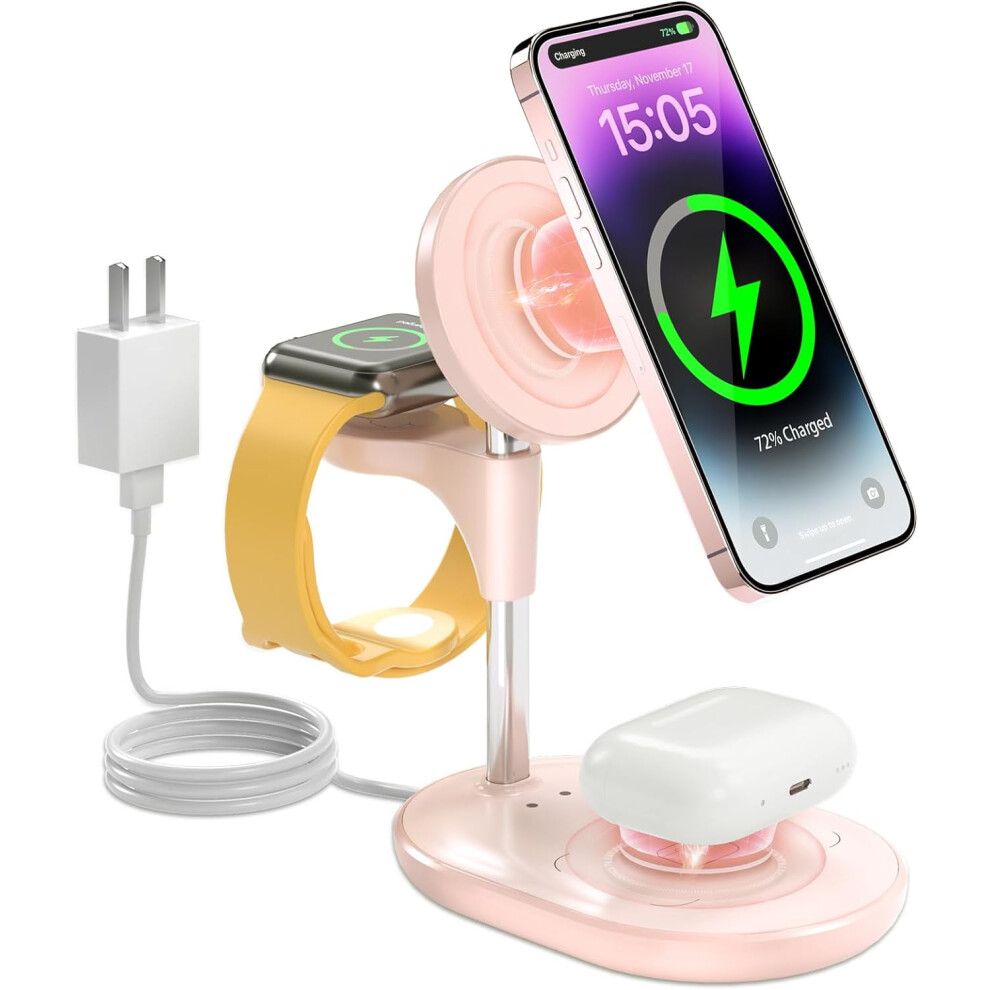 3 in 1 Wireless Charging Station Stand for iPhone, compatible with MagSafe & Apple Watch, Pink