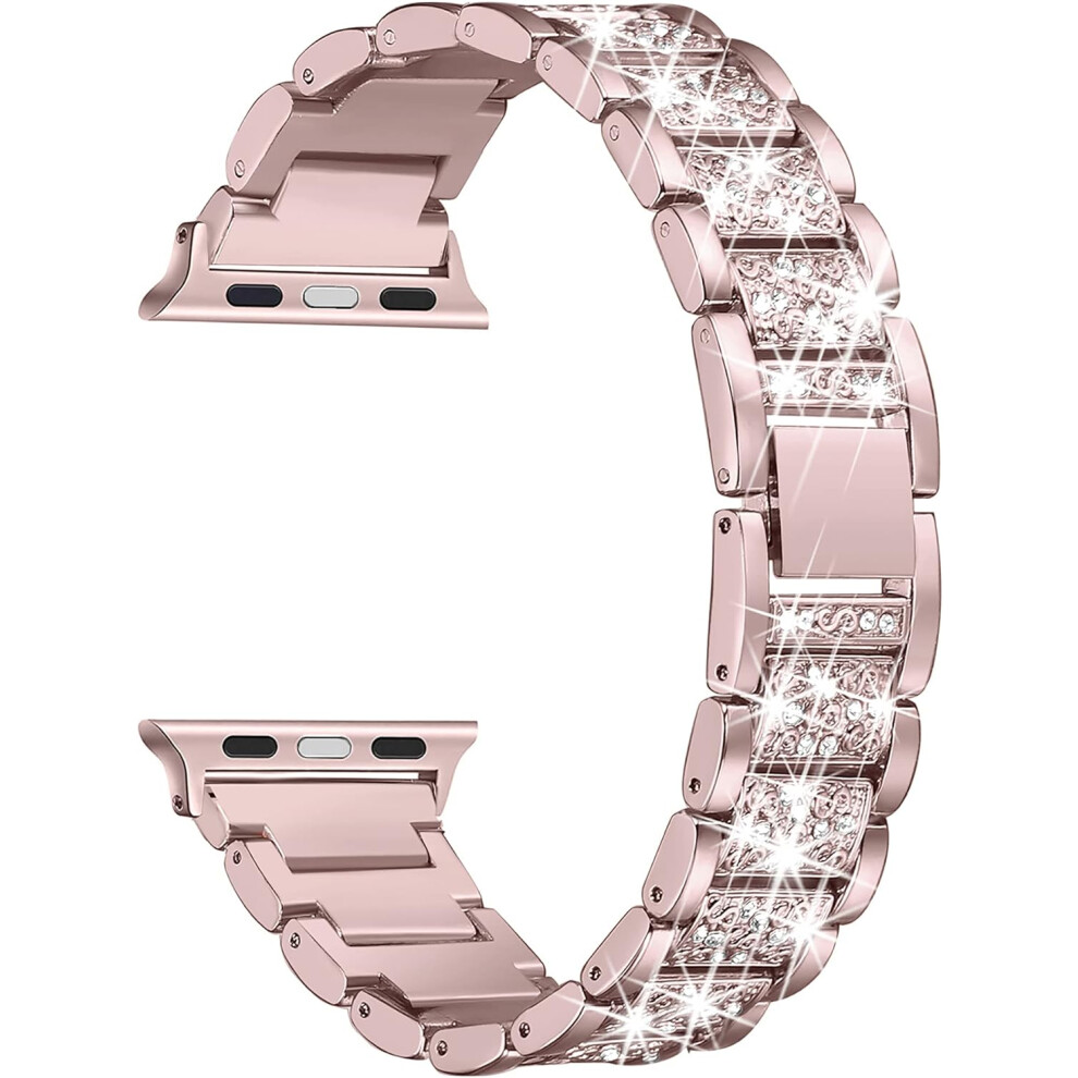 NewWays Leather Strap for Apple Watch 42mm(Series 11/10) 40mm 41mm 38mm,Women Bling Bracelet Band for iWatch SE(2025-2020) Series 11 10 9 8 7 6 5 4 3 2 1,Rosegold/Pink