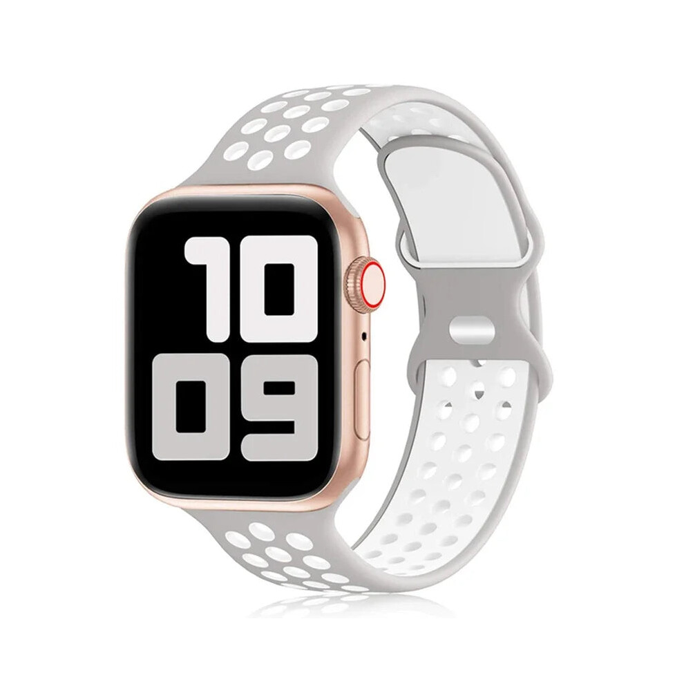 (Grey White, 38 40 41mm) Strap For Apple Watch Correa Silicone sports bracelet iwatch 8 SE 7 6 5 Ultra