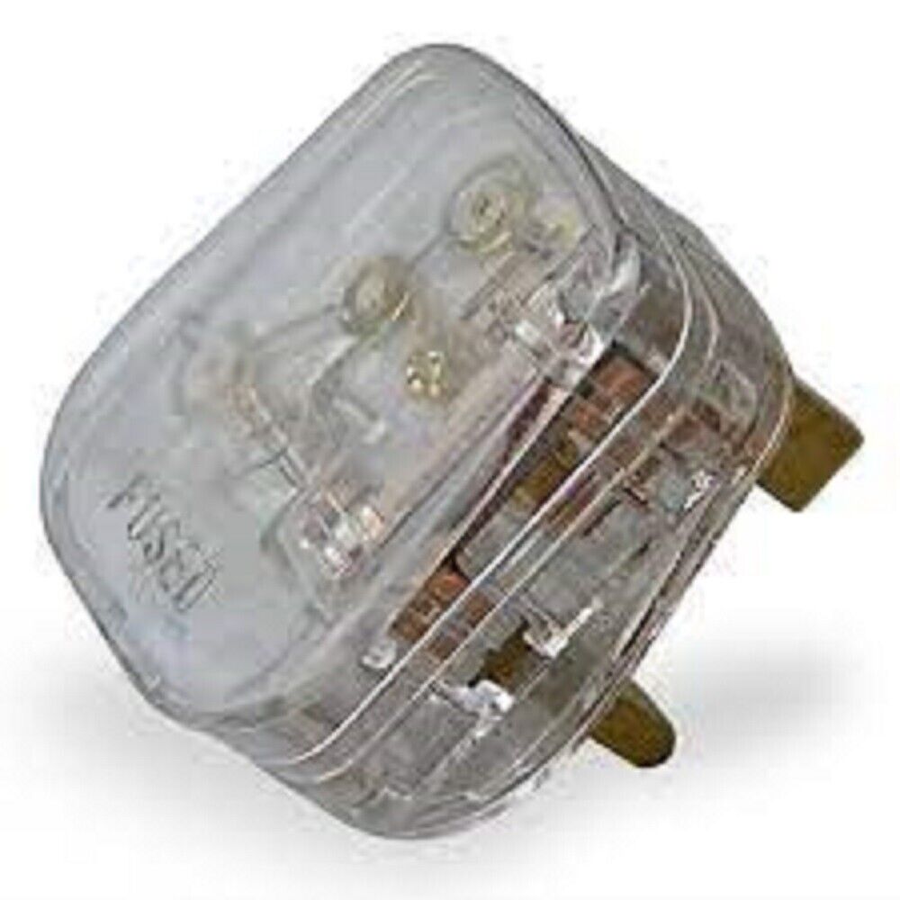 Clear Transparent Mains Electrical Plug 13A Fuse fitted Uk Power 500w Appliance