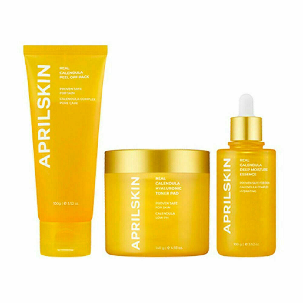 April Skin Real Calendula Skincare Trio (Essence + Peel Off Pack + Peeling Pad)