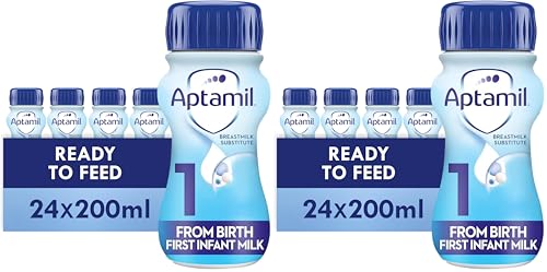 Aptamil 1 First Infant Baby Milk Ready To Use Liquid Formula, From Birth, White, 200 ml, (Pack Of 48)