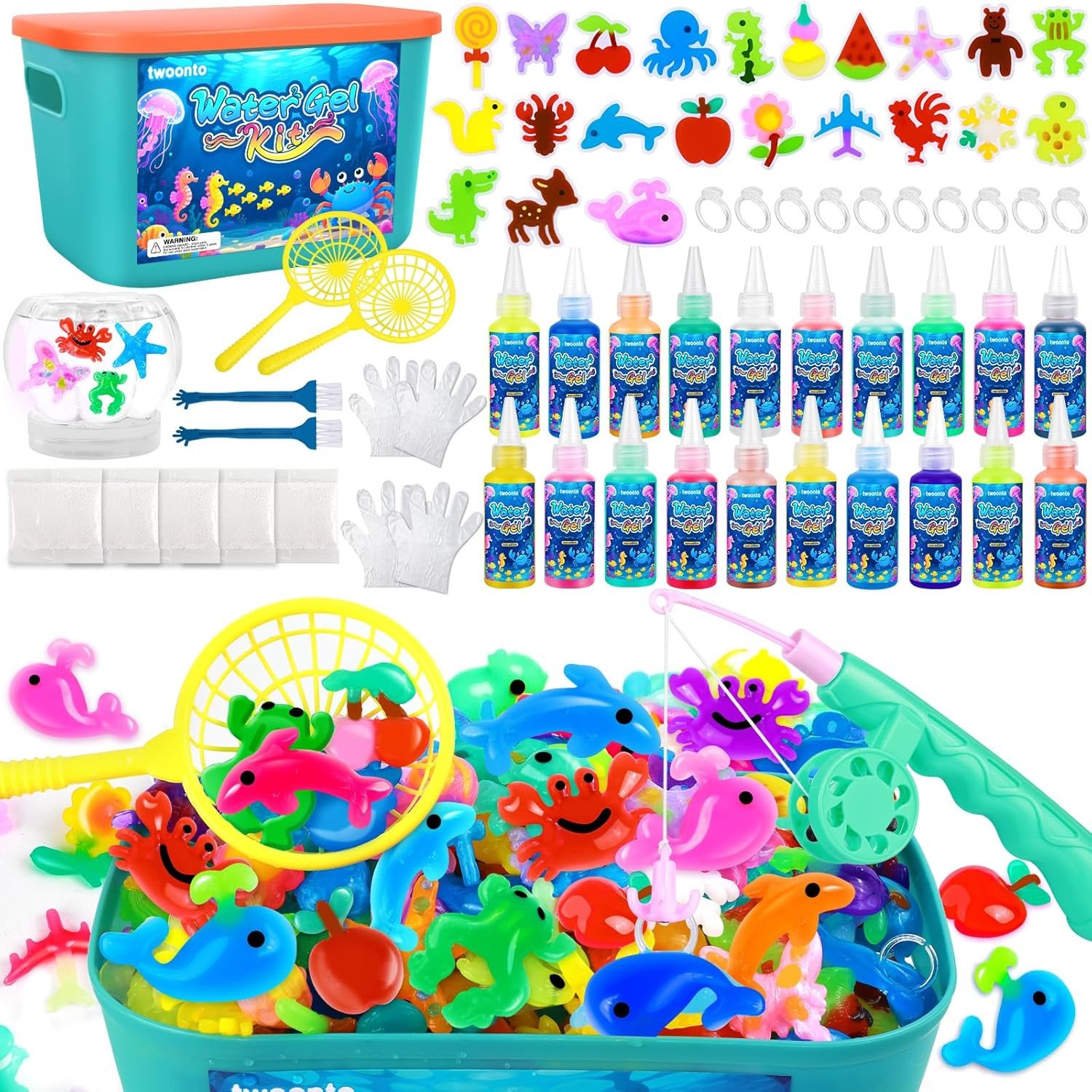 twoonto Magic Water Elf Kit, Aqua Fairy Water Gel Toy 20 Magic Gels & 22 Molds Squishy Making Kit DIY Art & Crafts for Kids Ages 3+ Birthday Gifts Party Favors