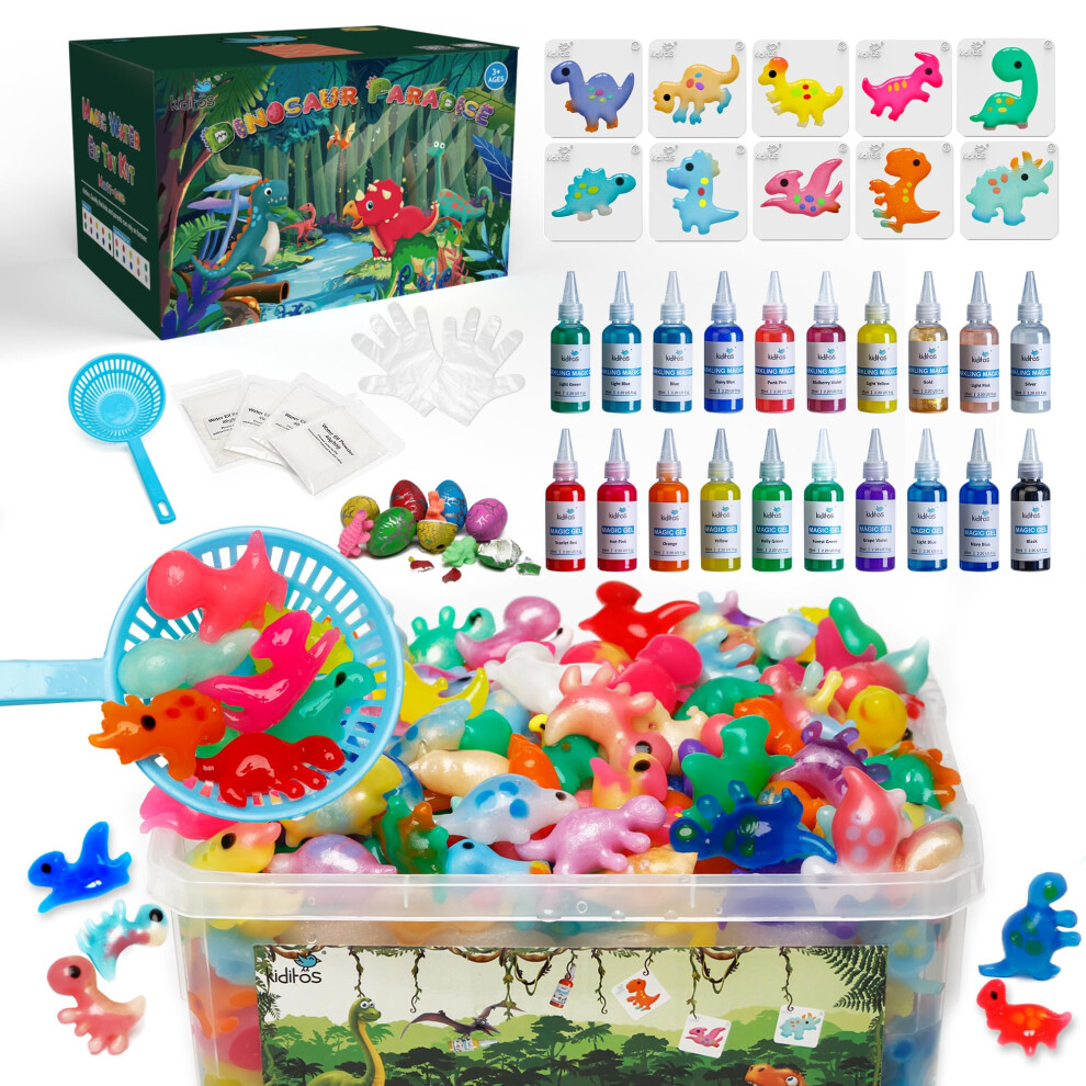 Kiditos Magic Water Elf Toy Kit Aqua Fairy Water Gel Kit with 20 Magic Gels 10 Dinosaur Molds Birthday Gifts Party Favors Arts & Crafts