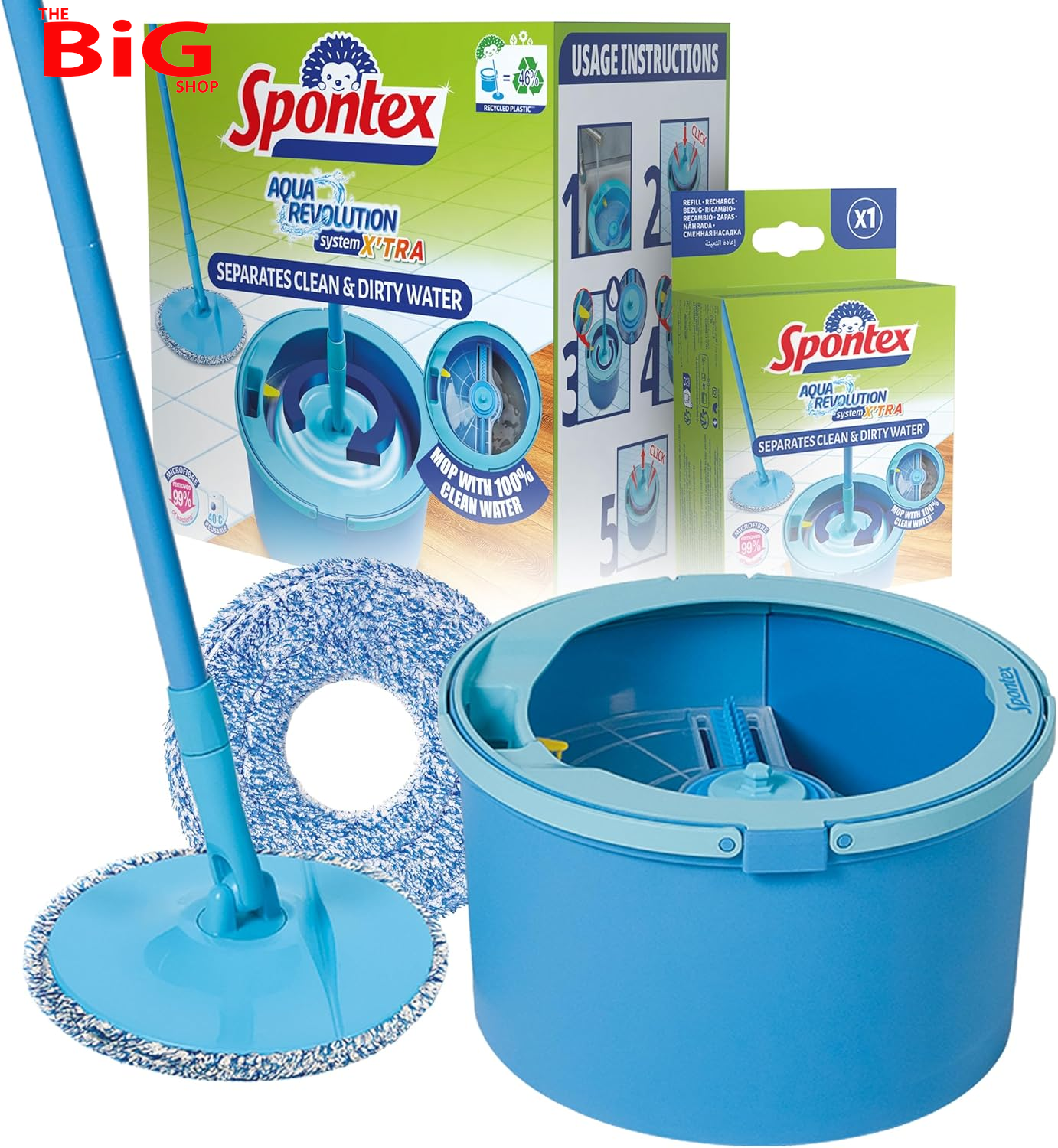 Spontex Aqua Revolution System X'Tra Floor Mop and Bucket Set with Free Refill |