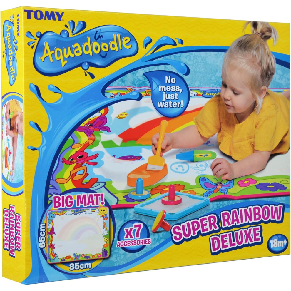 Aquadoodle Super Rainbow Deluxe Large Water Doodle Mat, Official TOMY No Mess Colouring & Drawing Game, Suitable for Toddlers and Children From 18 Mon