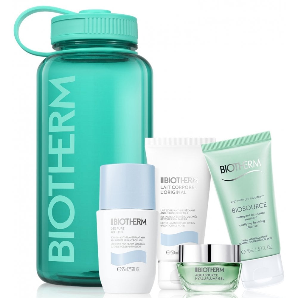 Biotherm Set: Deo Pure Deodorant Roll On 75ml + Lait Corporel Body Milk 50ml + Cleanser + Aquasource Hyalu Plump Gel 15ml - One Size