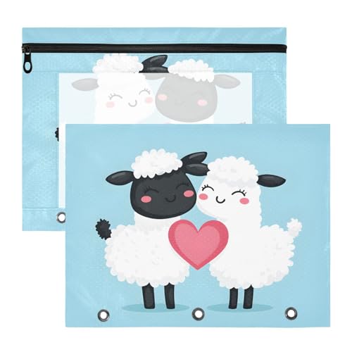Quteprint 2-Pack Pencil Pouch for 3 Ring Binder, Love Heart Alpaca Binder Pencil Case A4 File Bag with Zipper Clear Window, Durable Binder Organizer Large Capacity for School Office Makeup
