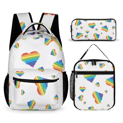Morbuy Kids Backpack and Lunch Bag Set, Rainbow Style 3 Piece School Backpack Set for Girls Boys, Insulated Lunchbag + Pencil Case + Schoolbag, Causal Bookbag Rucksack Lightweight (Love Heart)