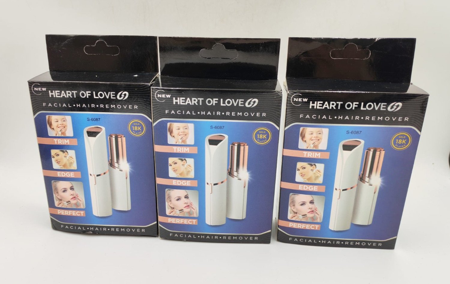 3 x Heart of Love Facial Eyebrows Hair Remover Rose Gold Plated Painless