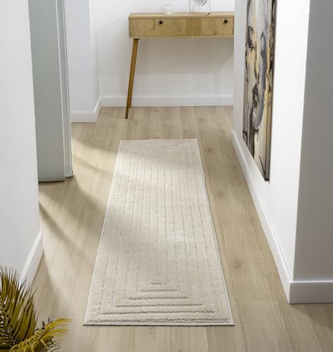 Rugs by Desire Isabella Living Room Area Rug - Cut-Loop Pile Polypropylene Weaving - Jute Backing - Indoor Carpet in Geometric, Cobble, Mazia Arch, Imperial Trellis Designs, Cream, 60x220 cm