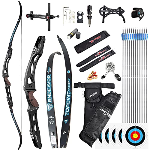SHARROW Archery Recurve Bow and Arrows Set ILF Bow Riser and Limbs 66/68/70 Inch Aluminum Riser Takedown Recurve Bow for Athletic Competition (70"/38lbs, Black)
