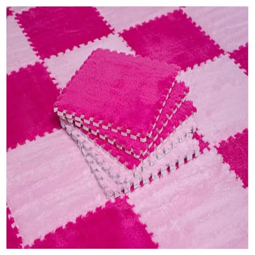 12pcs Carpet Squares Puzzle Floor Mat Arctic Fleece Interlocking Carpet Tiles Anti Slip EVI Foam Jigsaw Floor Tiles Build A Safe Area For Bedroom Playroom(Magenta+Pink,50pcs)